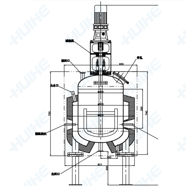 該反應(yīng)設(shè)備主要由鍋體、鍋蓋、攪拌器、夾套、支承及傳動(dòng)裝置、軸封裝置等組成(可按工藝需要采用帶保溫結(jié)構(gòu)),根據(jù)物料生產(chǎn)要求和用戶所需而確定壓力、溫度、材質(zhì)、攪拌裝置類(lèi) 型、轉(zhuǎn)速、密封結(jié)構(gòu)、加熱方式等進(jìn)行設(shè)計(jì)制造。