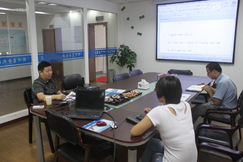 安徽客戶需要定制一套綠豆汁生產(chǎn)線設(shè)備,與銷售人員和工程師進(jìn)行需求的洽談。